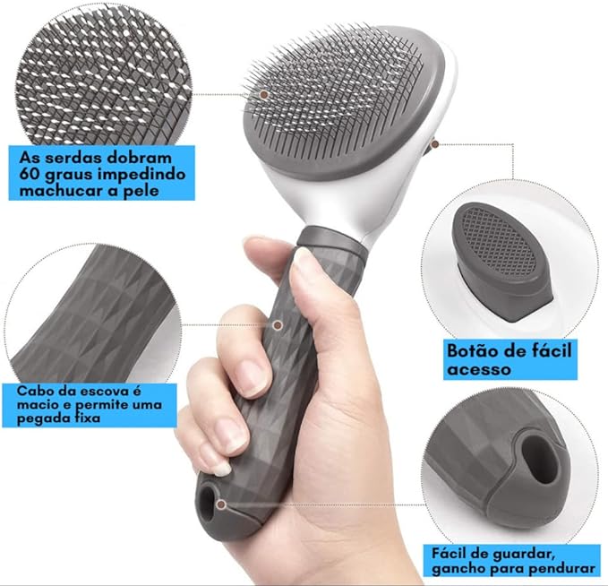 Com um design inovador, ela remove os pelos soltos de forma eficiente enquanto proporciona uma massagem relaxante no seu pet, transformando a escovação em um momento de carinho e bem-estar.